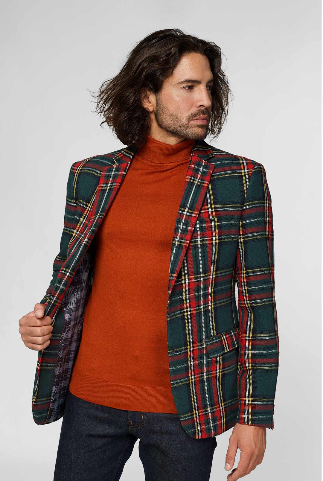 Tartan is a contemporary and cool look, giving you the confidence to express your personality during the most festive season of the year. This item from OppoSuits Deluxe is a funky wool blend blazer with a classic check and a statement ‘merry everything happy whatever’ lining.