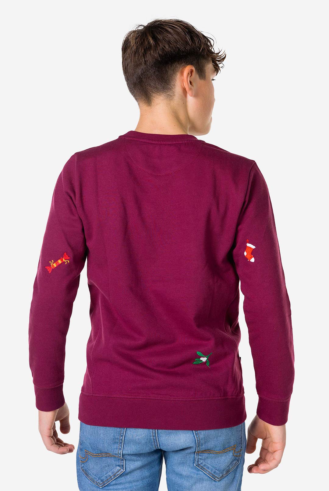 Light up the party and Catch all the attention with this burgundy sweater showing stars, candles, mistletoe and everything that makes for a warm and happy holiday season. If you are looking for a more comfortable and casual Christmas look your teen will love, this is the sweater for them!